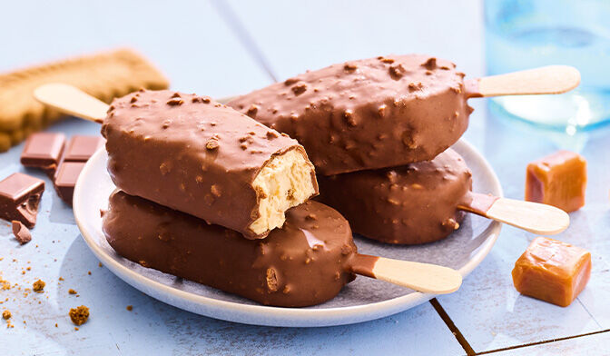 À tous les adeptes du célèbre biscuit de la pause-café, vous allez être servis avec ces bâtonnets gourmands à la crème glacée au spéculoos avec leur sauce au caramel au beurre salé, le tout enrobé de chocolat au lait parsemé de morceaux croustillants de spéculoos.