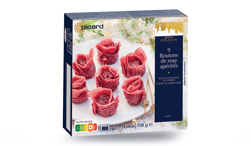 Des bonbons ? Pas vraiment. Sous ces ravissants boutons de roses fleurissent un morceau de bloc de foie gras de canard et un confit de cerise noire enrobés d’une feuille de brick rose aux épices. Gardez le secret pour maintenir l’effet de surprise ! Suite aux difficultés d’approvisionnement sur certaines matières premières liées à la guerre en Ukraine, des changements ont été apportés dans la recette du produit. L’information donnée sur le produit peut être en décalage avec la recette. Une dérogation d’étiquetage a été accordée par la DGCCRF. Vous trouverez le détail des modifications opérées sur : https://www.economie.gouv.fr/dgccrf/rechercher-produit-recette-temporairement-modifiee