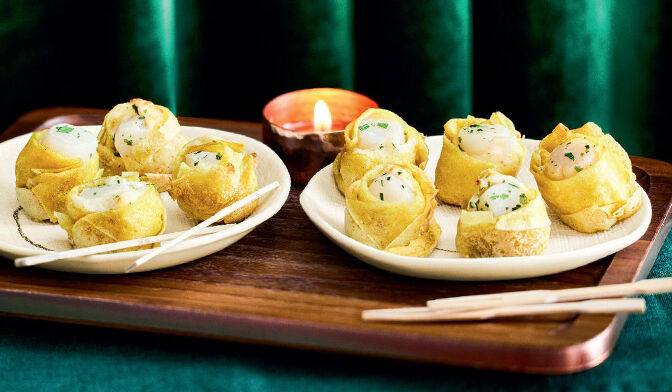 Avec leur feuille de brick pliée à la main et la dépose minutieuse de la noix de Saint-Jacques*, ces bouchées apéritives croustillantes aux agrumes vont donner de la couleur à vos tablées de Noël.*Zygochlamys patagonica, Argentine