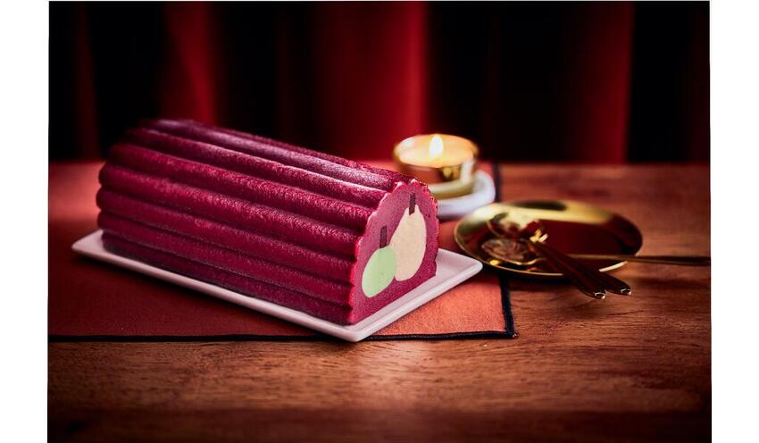 Découvrez cette bûche glacée, fraîche et fruitée avec ses 3 sorbets plein fruit, fruits rouges, poire et pomme verte. Une fois coupée, un beau décor de fruits se révèlera.