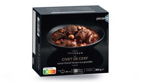 50 min180°CPréchauffez votre four à 180°C (th.6). Sortez la barquette de son étui carton et de son emballage plastique. Laissez cuire le temps indiqué sur une grille à mi-hauteur et couvrez au bout de 40 minutes de cuisson: - Four traditionnel : 56 min - Four à chaleur tournante : 50 min Laissez reposer quelques instants avant de déguster.