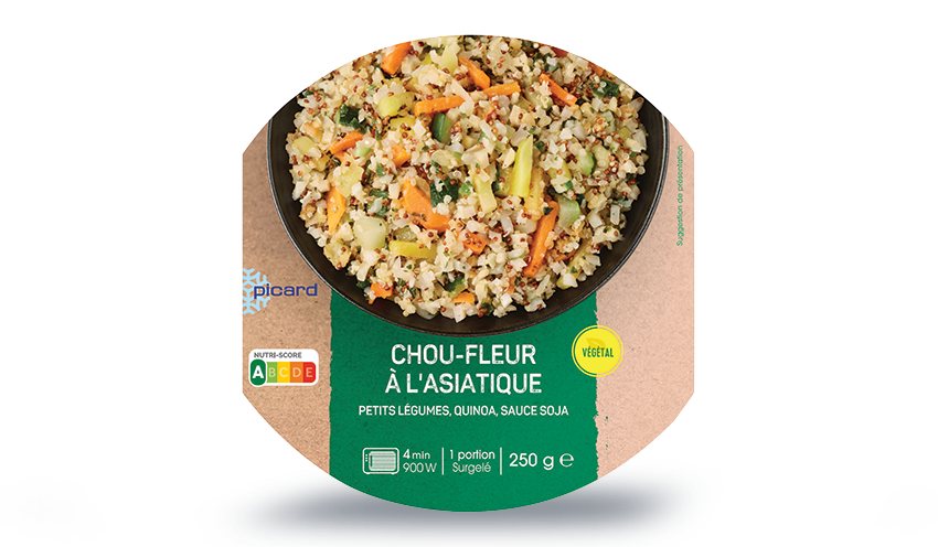 Produit élaboré en France à partir de chou-fleur, courgette et carottes origine UE, quinoa origine UE et non-UE