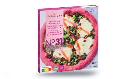 Pizza houmous basilic stracciatella, sce framboise