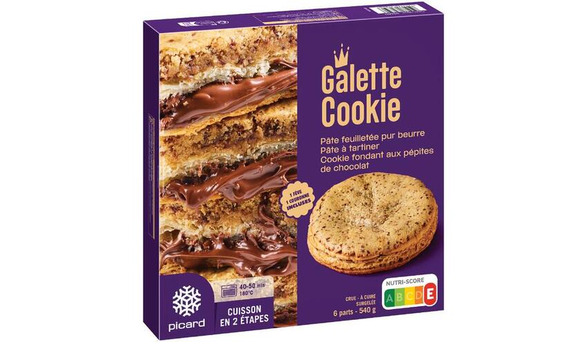 40 - 50min180°CRetirez les emballages, laissez le cookie au congélateur. Faire cuire dans un premier temps la galette seule 30 à 35 minutes sur une plaque recouverte de papier cuisson. Démoulez et ajoutez dans un second temps le cookie sur la galette précuite et poursuivez la cuisson de l'ensemble 10 à 15 minutes. Laissez reposer 5 minutes à température ambiante (20 °C) avant de déguster. Contient 1 fève. Cette fève n'est pas consommable et ne convient pas aux jeunes enfants, ils pourraient risquer de s'étouffer.