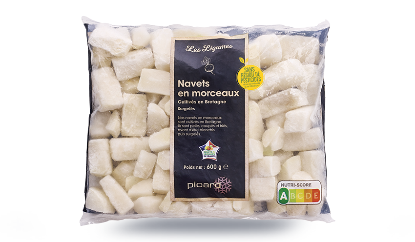 Cultivés en Bretagne, ces navets sont soigneusement lavés, pelés à la vapeur, coupés en morceaux et blanchis avant leur surgélation. Sans résidu de pesticides, ils sont prêts à cuire sans autre préparation, à plonger au cœur d’un potage ou encore à mijoter pour vos petites soirées d’hiver !